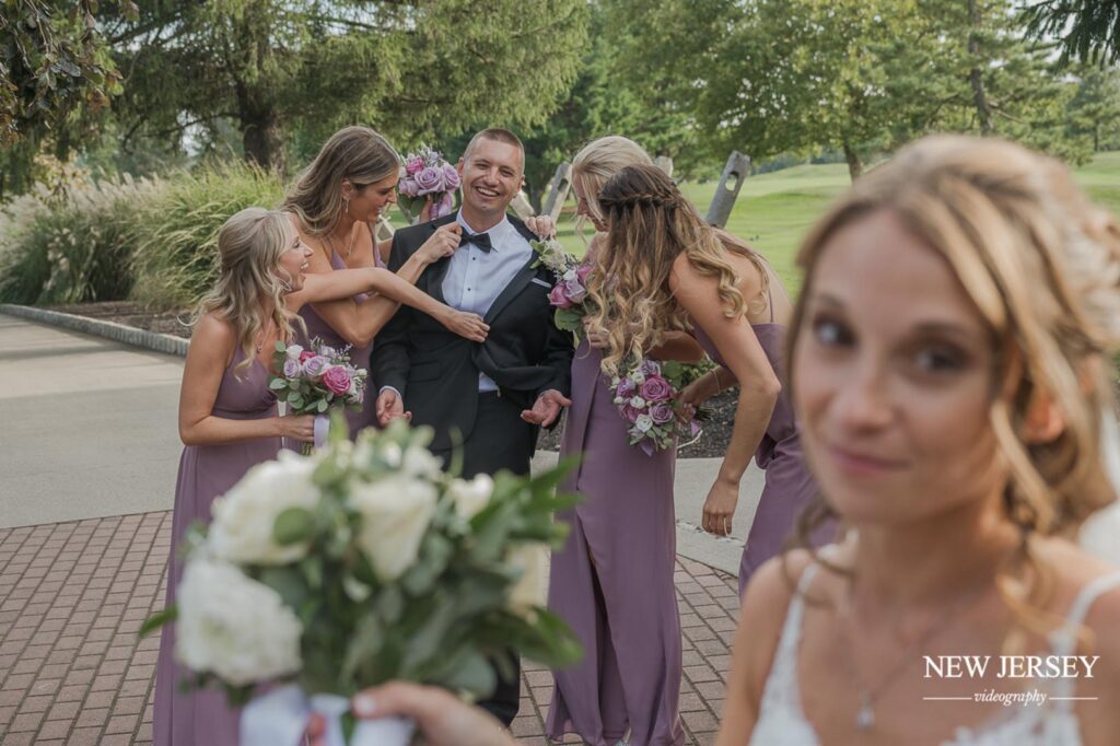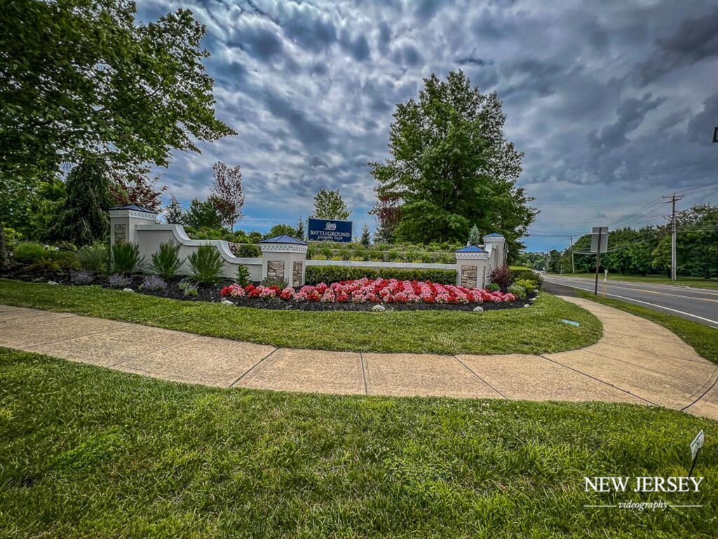 A 220-acre, immaculately groomed golf course surrounds this renovated wedding venue. The Battleground Country Club is in the Manalapan Township in Western Monmouth County, NJ. The site sits conveniently about 15 miles from New York City, meaning it’s less than an hour’s drive from the Jersey Shore. The club is on the historic grounds of the Battle of Monmouth.