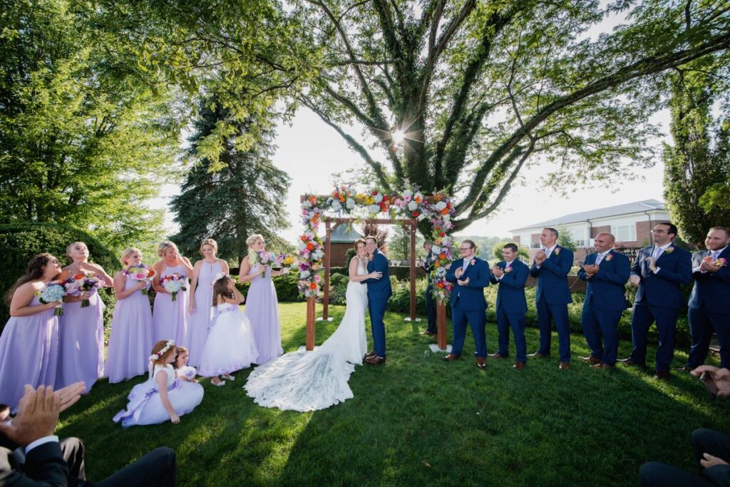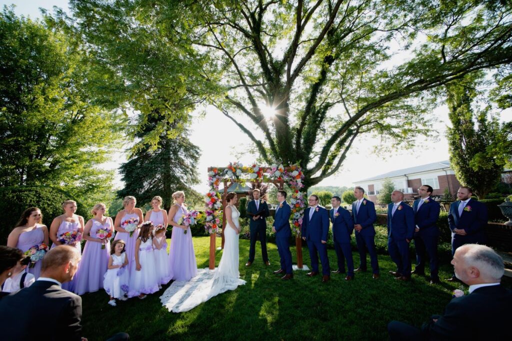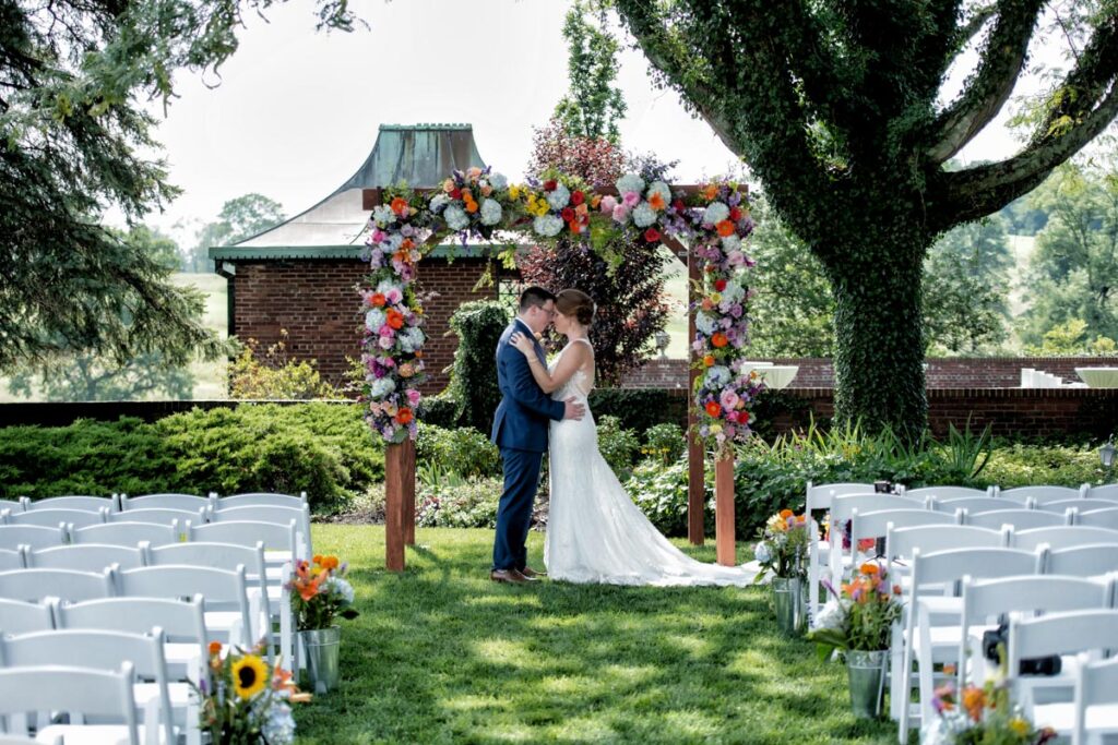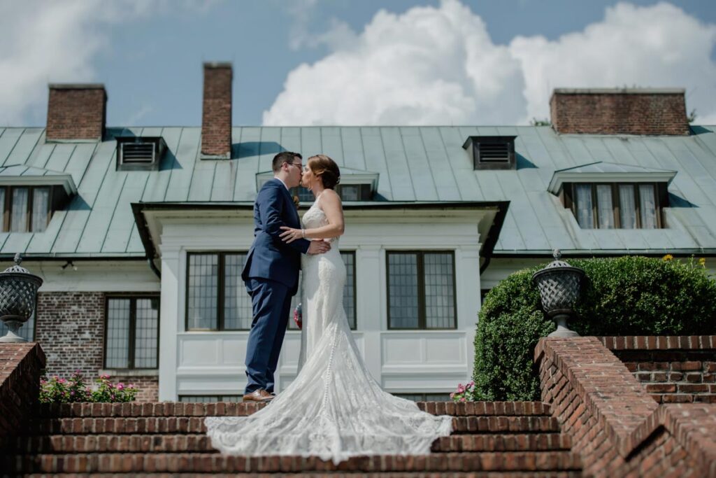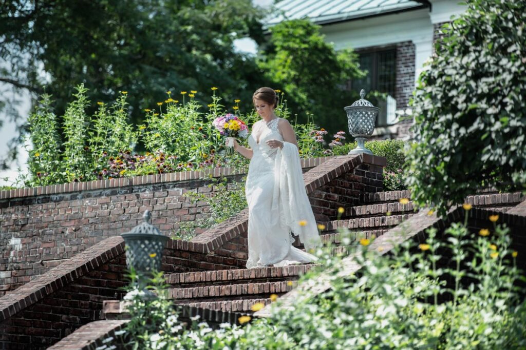No matter the season, the Georgian mansion and surrounding grounds embrace a lovely place to wed. You can choose from many spots at this gorgeous venue to celebrate your special day. Some marry at the mansion’s entrance, with its pillars and stately walkway. Others marry in the luxurious gardens. You may decide to say “I do” in the ballroom, with its expanse of windows. Whatever you select, it’s sure to be spectacular.