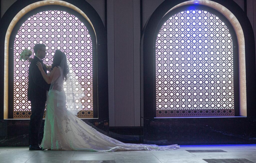Then move indoors to a stylish pre-event lounge for drinks under dramatic LED lighting that make your next set of wedding photos pop. Allow the professional wedding planners at The Grand to create a reception that’s uniquely yours. Their grand ballroom has vaulted ceilings, one-of-a-kind Versace tile, Swarovski chandeliers and architecture reminiscent of Europe’s finest villas.
