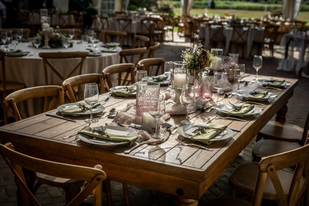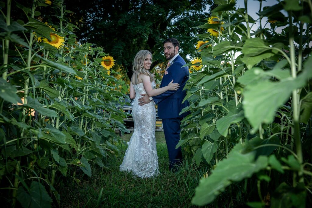 Your videographer will swoon at the many elegant and naturally rustic spots available for the perfect wedding shots. Your event can take place from noon until 10:00 AM the following day, so you have plenty of time to sit quietly under looming sunflowers in the fields and dance under stars in the tent all night long.